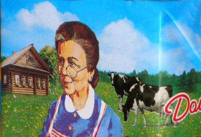 А все-таки, что вы мне не говорите, но не бывает таких чопорных бабушек в российских деревнях! Эта бабуля скорее похожа на какую-нибудь фрау Мюллер. Выглядит как оккупант: - Я-я, бистро-бистро! тыдыш-тыдыш (из автомата Шмайсер) - Партизанен! Ахтунг, ахтунг!!! тыдыш-тыдыш. Будем немножко забирать молоко и поджигать домишко! Или как железная леди Маргарет Тэтчер: - Я покупать у вас весь молоко по два шиллинга и два пенса в кредит. И немножко покупать земельный угодий - стройка Даймлер Бенц фэктори. Короче, не крестьянская бабка, а скорее - черный рейдер. А может призвана производить благоприятное впечатление на байеров разных Маркткауфов и МЕТРО кэш энд керри? А может, это немец рисовал? Вспоминаетс